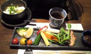 お野菜の柚子味噌バーニャカウダ。ふわふわ豆腐など。