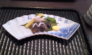 桜の葉に黄身酢を添えて。
