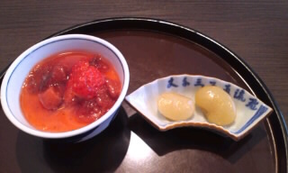 苺のミルクプリン、花豆。