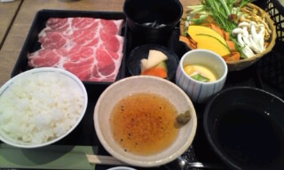 コラーゲンの塊が入ったお鍋で、豚肉をしゃぶしゃぶするの。