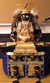 母のホームのエントランスに飾ってある鎧兜。