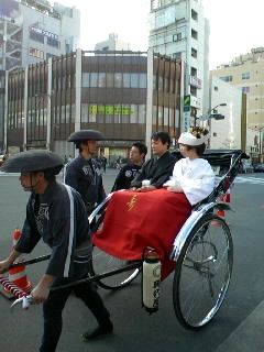 人力車に乗っている光景に遇いました。