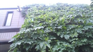 去年までは、蔓を2階のルーフバルコニーの外まで伸ばしましたが、
