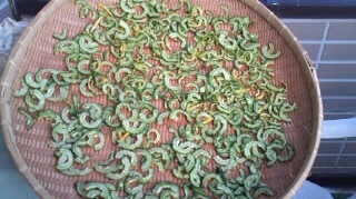 2日間ザルで干し、ネットに入れて1日吊るして、完全に乾きました