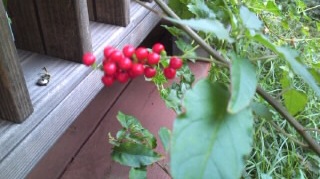 赤い実が可愛いのだけど、最初はピンク色です。名前忘れています。