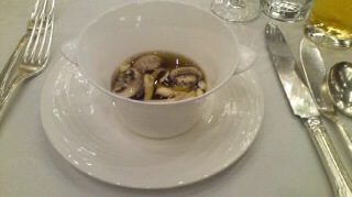きのこを入れたコンソメスープ カツオの一番出汁の香り