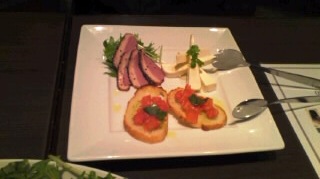 オードブル3種盛り合わせ スモーク鴨とチーズとカナッペ