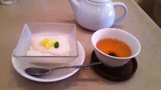 デザートは、タピオカココナッツミルクにしました。ライチティーと。