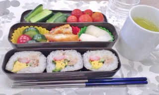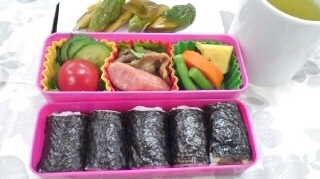 海苔巻きと太巻きは買ったものです。