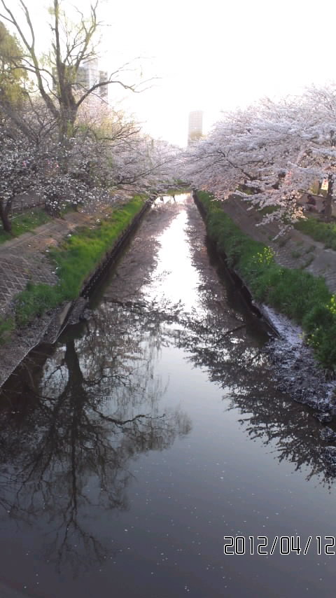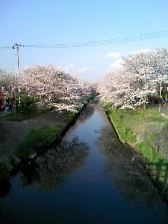 両岸のジョギングロードは桜のトンネルが続いています。